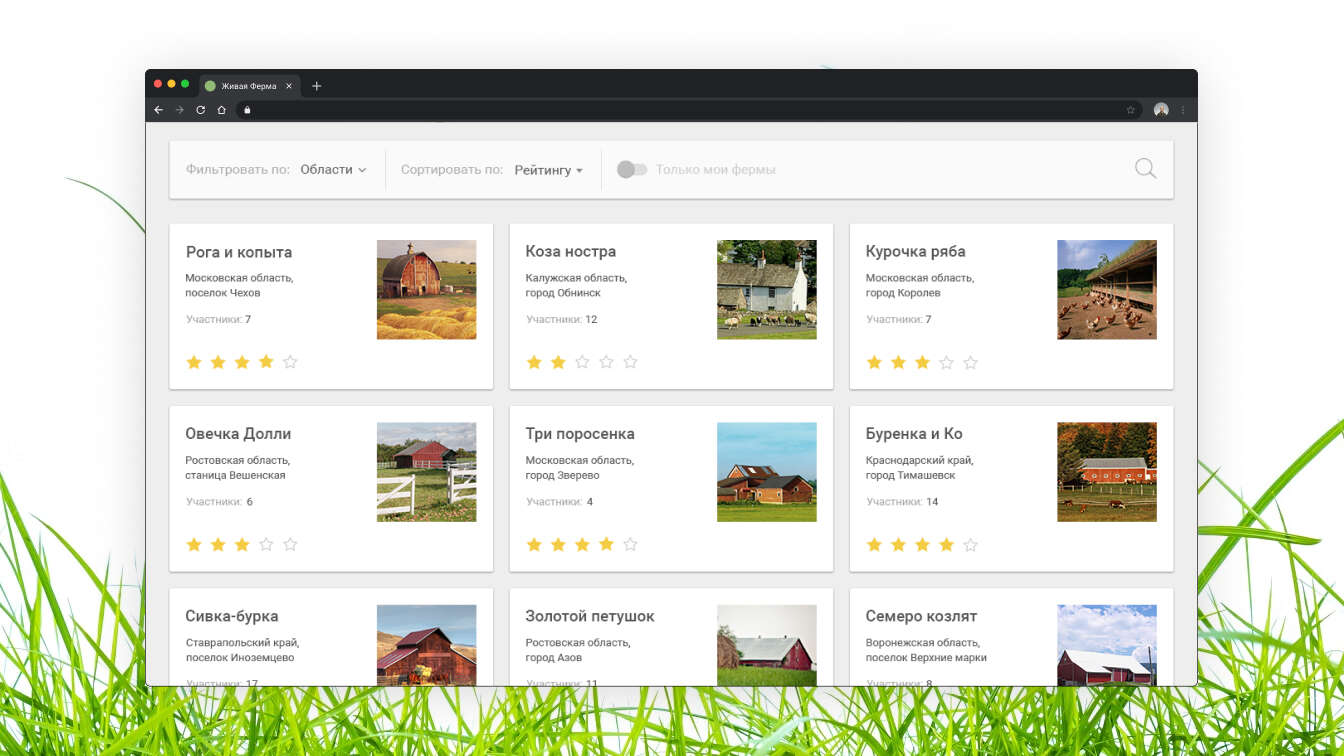 Разработка сервиса - online-канала продаж фермы через геймификацию, с возможностью инвестиций в выращивание животных с возможностью выкупа или продажи. А также разработка интернет-магазина для продажи продукции.