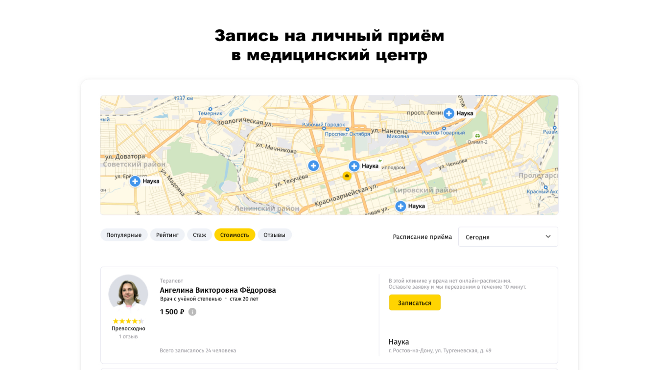 Заказчику требовалось разработать онлайн-сервис медицинских консультаций, в котором пациент сможет получить консультацию врача с помощью компьютера или телефона.